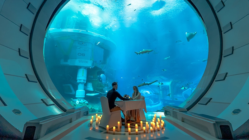 Enjoy a romantic four-course dinner with live music and a choice of beverage packages.