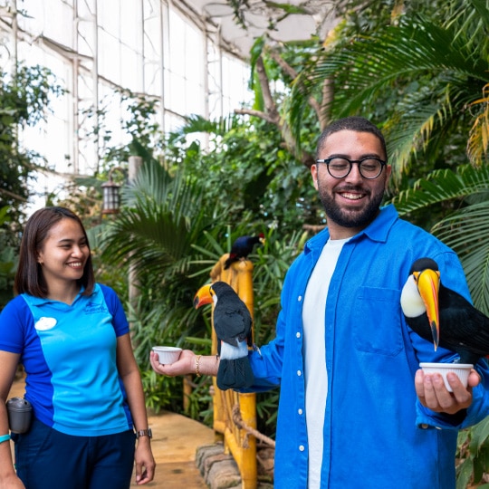 تعرّفوا على عالم الطيور الاستوائية من خلال تجربة إطعام تفاعلية في الخابة الاستوائية بإشراف خبرائنا. اكتشفوا سلوكياتها وبيئتها الطبيعية وجهود الحفاظ عليها، بينما تحلّق الطيور بحرية من حولكم.